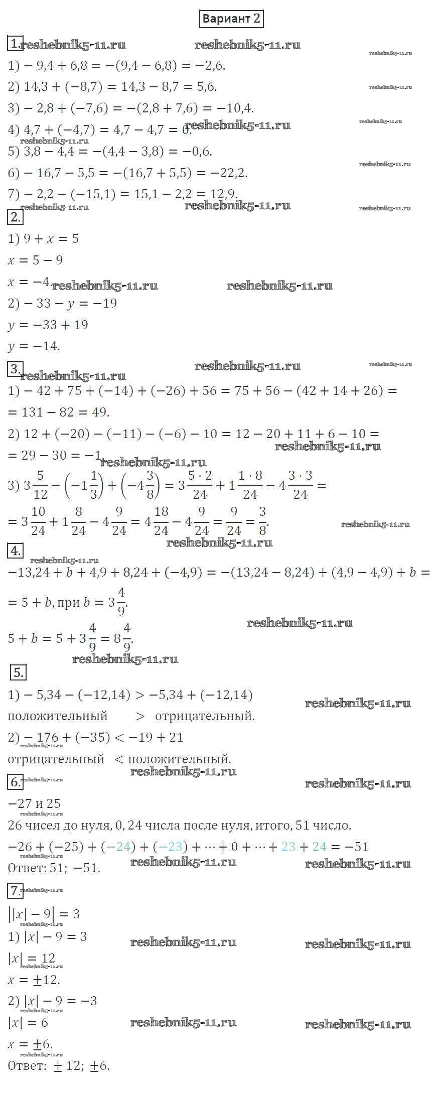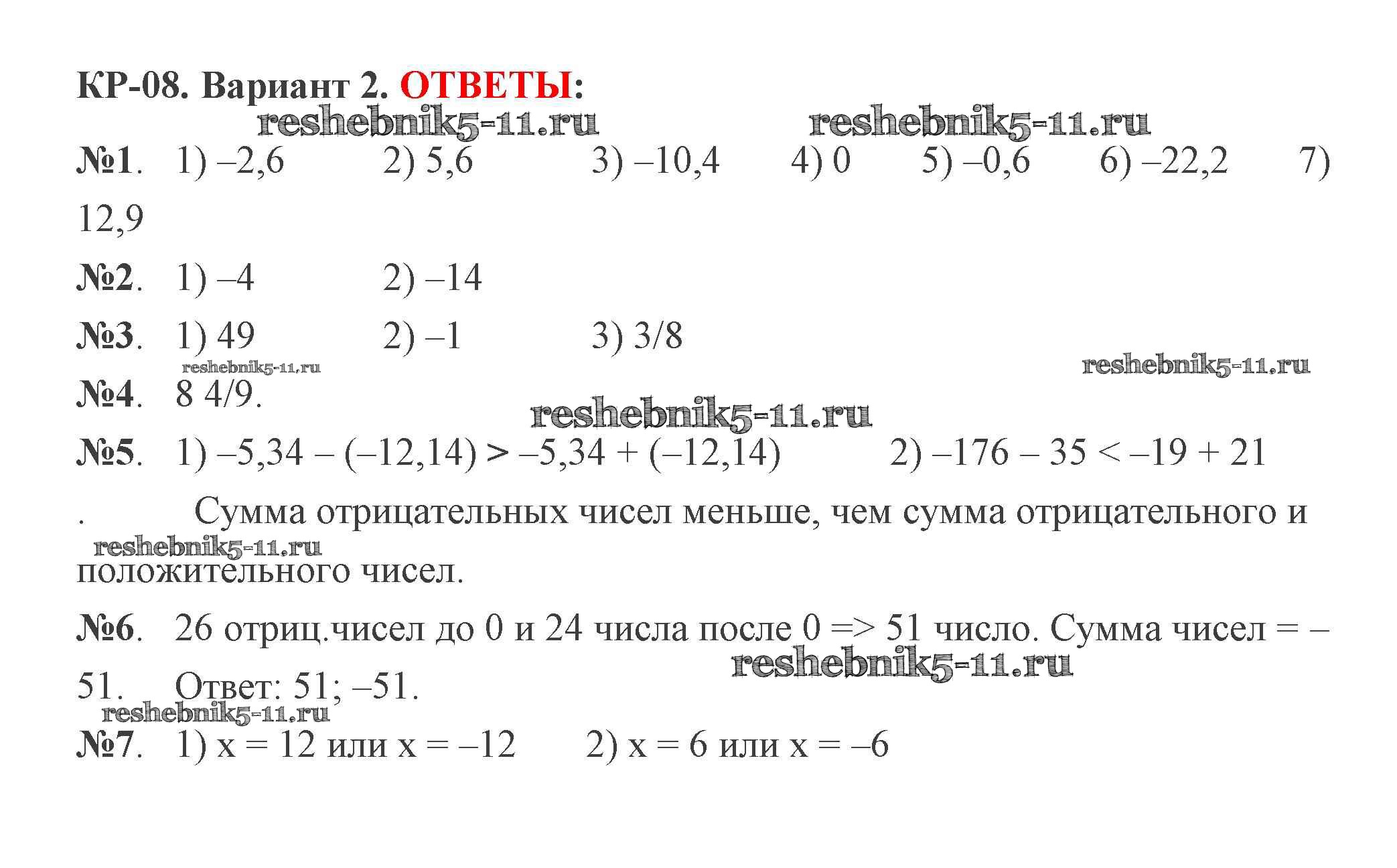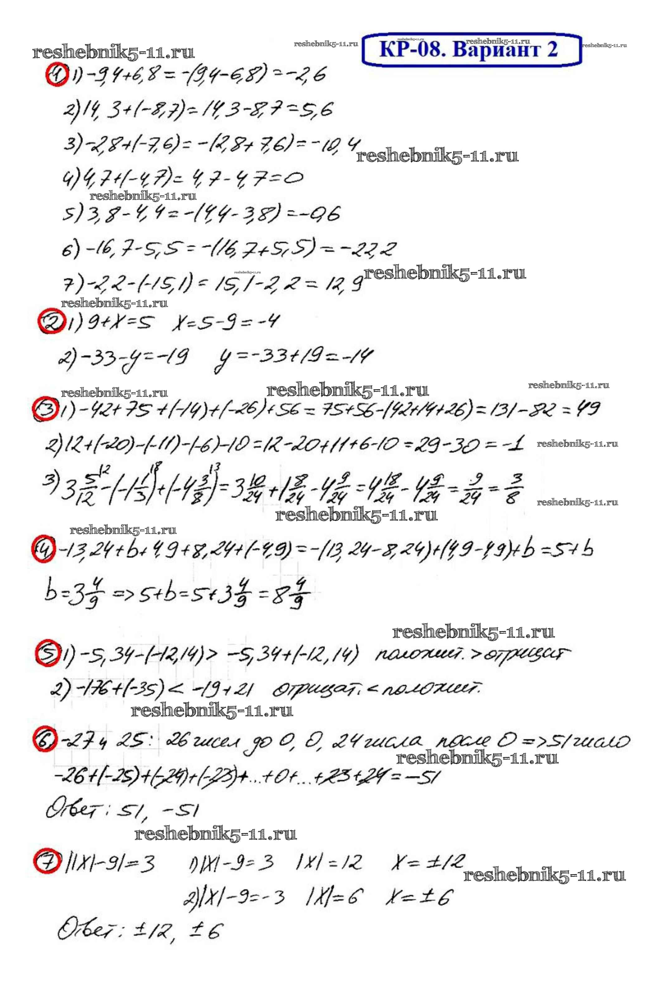 Готовая домашняя работа с ответами по Математике за 6 класс Мерзляк, Полонский, Рабинович, Якир Дидактические материалы Алгоритм успеха Вентана-граф 2017 ФГОС - КР-8. Варианты 2