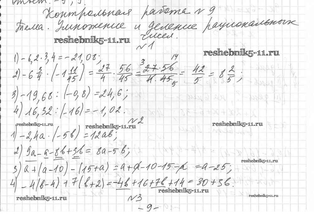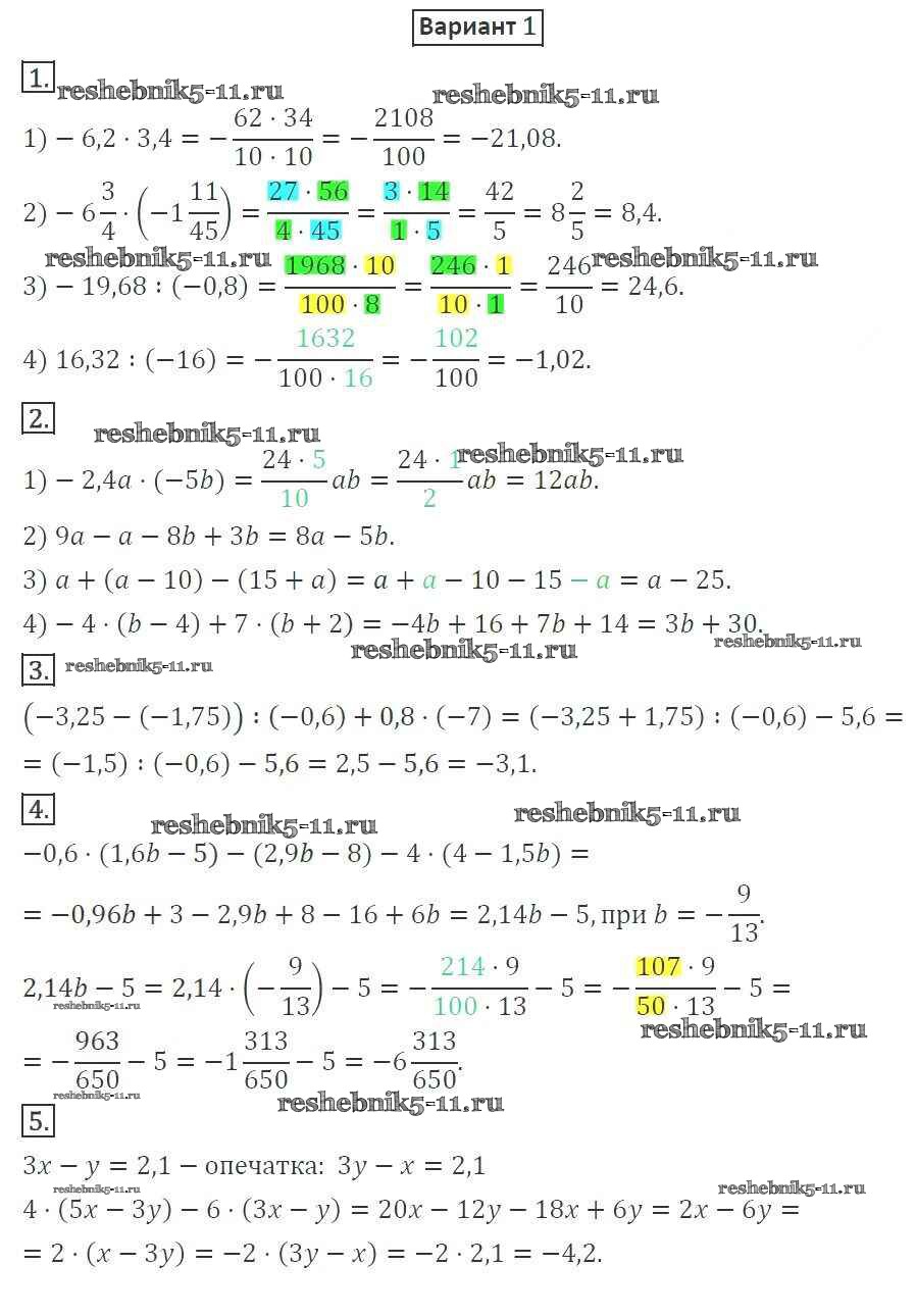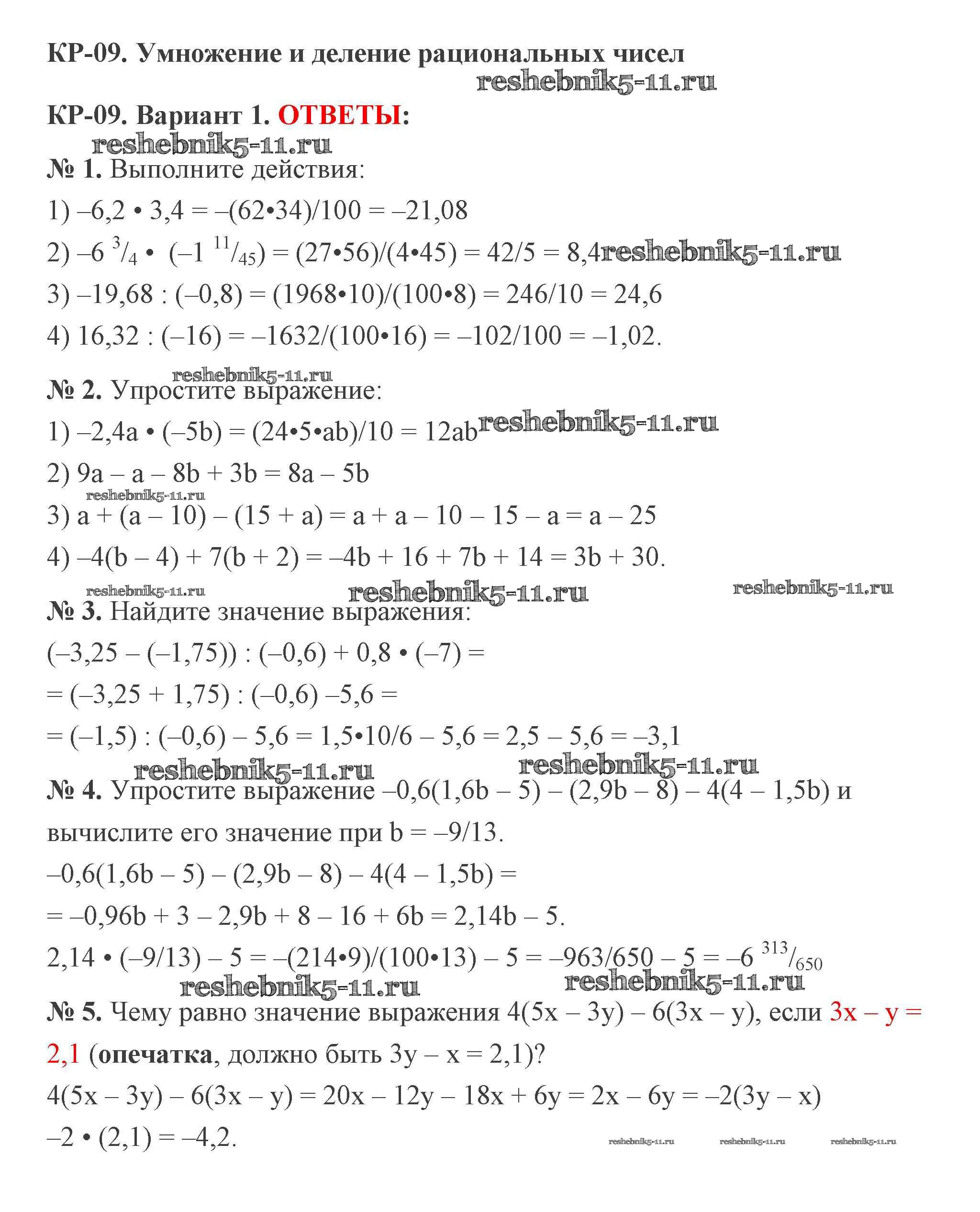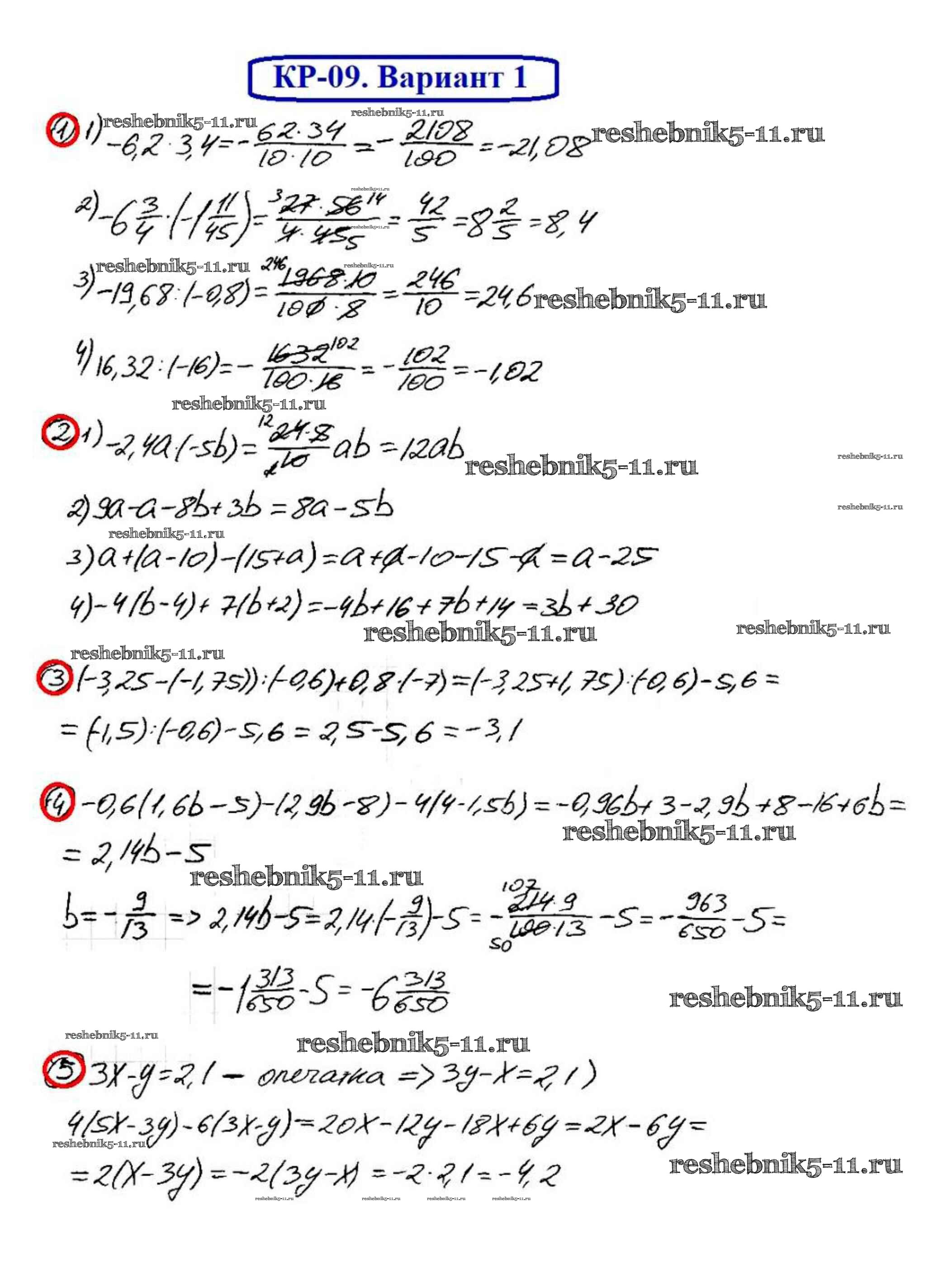 Готовая домашняя работа с ответами по Математике за 6 класс Мерзляк, Полонский, Рабинович, Якир Дидактические материалы Алгоритм успеха Вентана-граф 2017 ФГОС - КР-9. Варианты 1