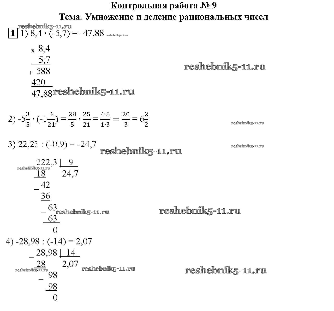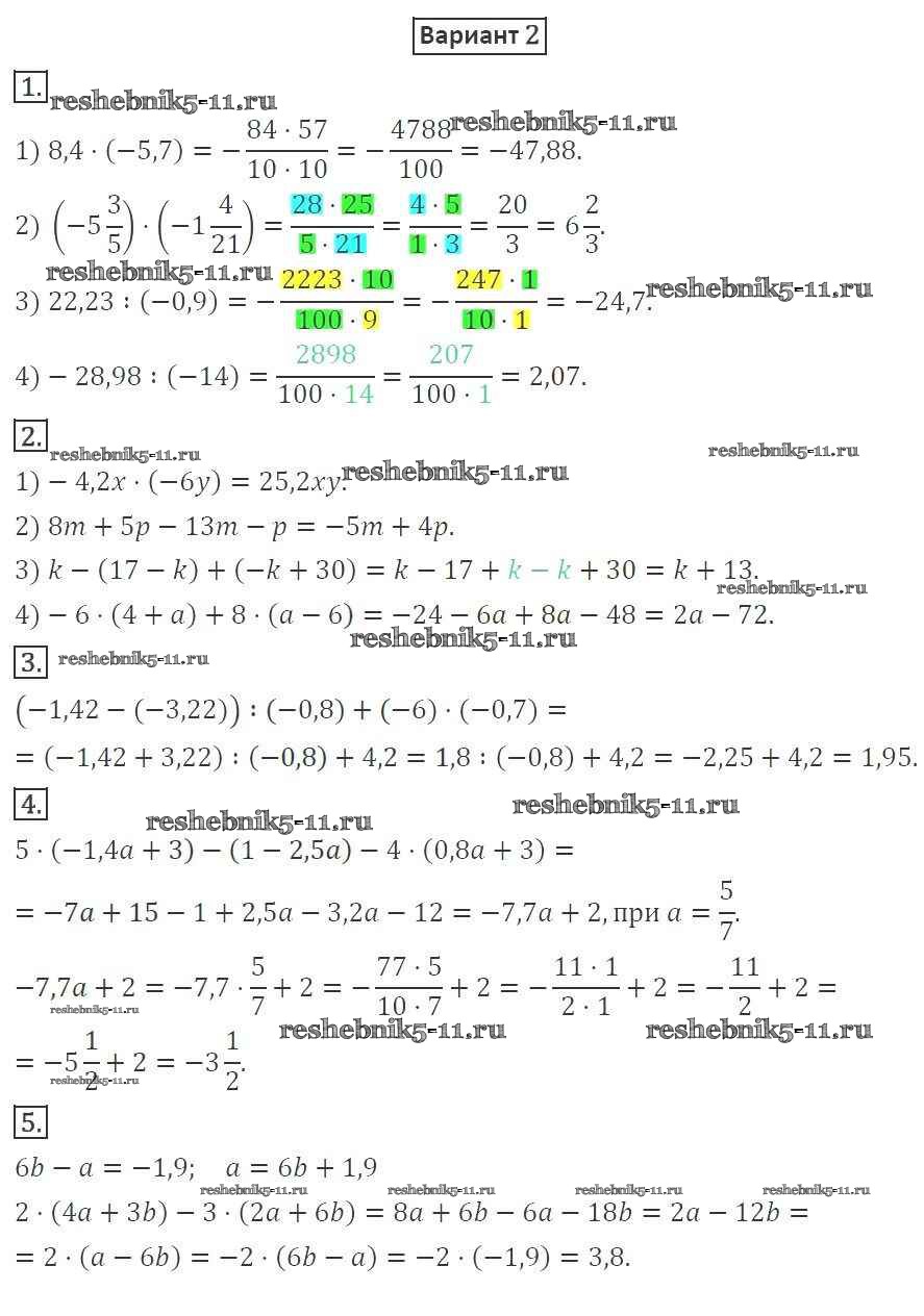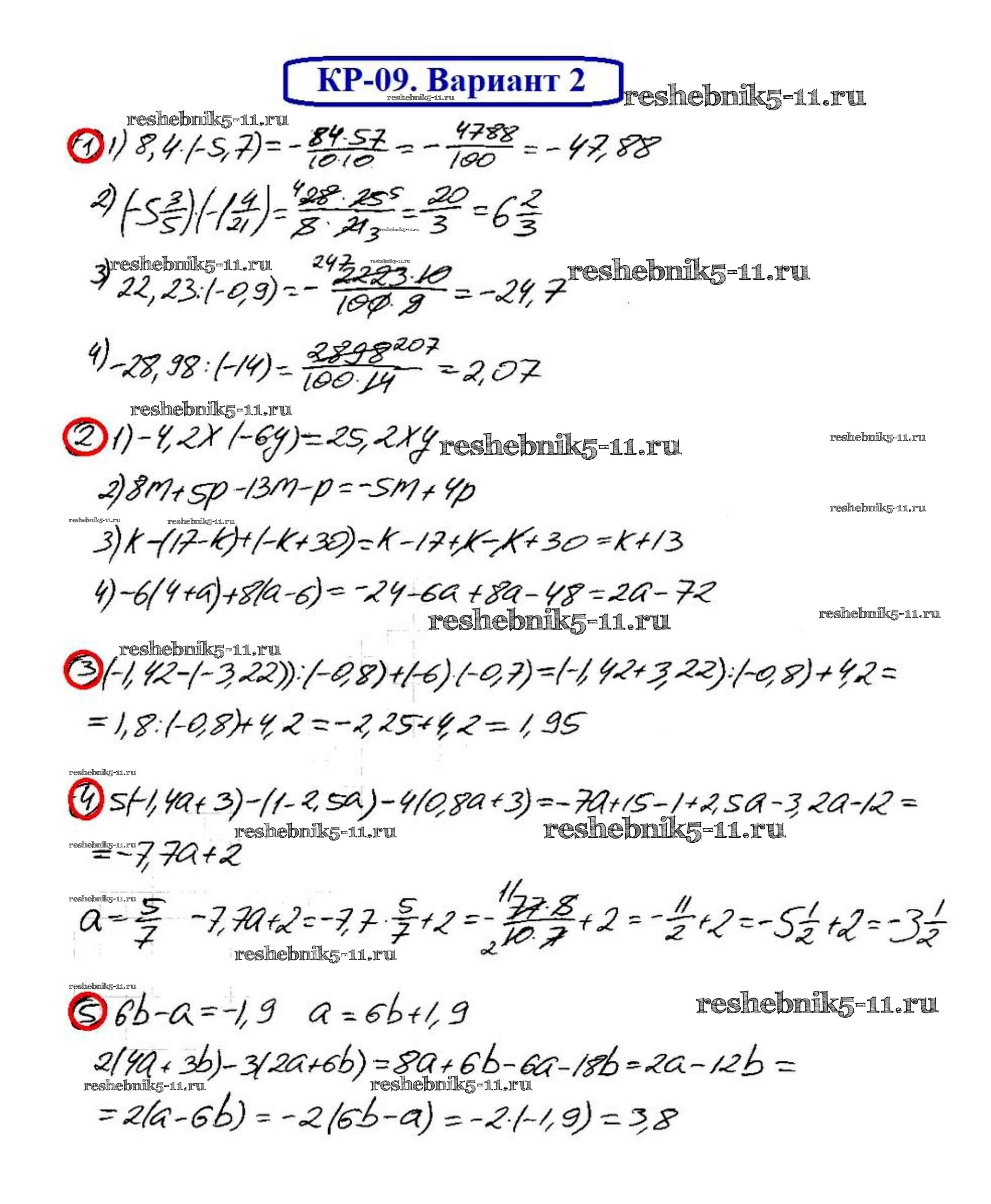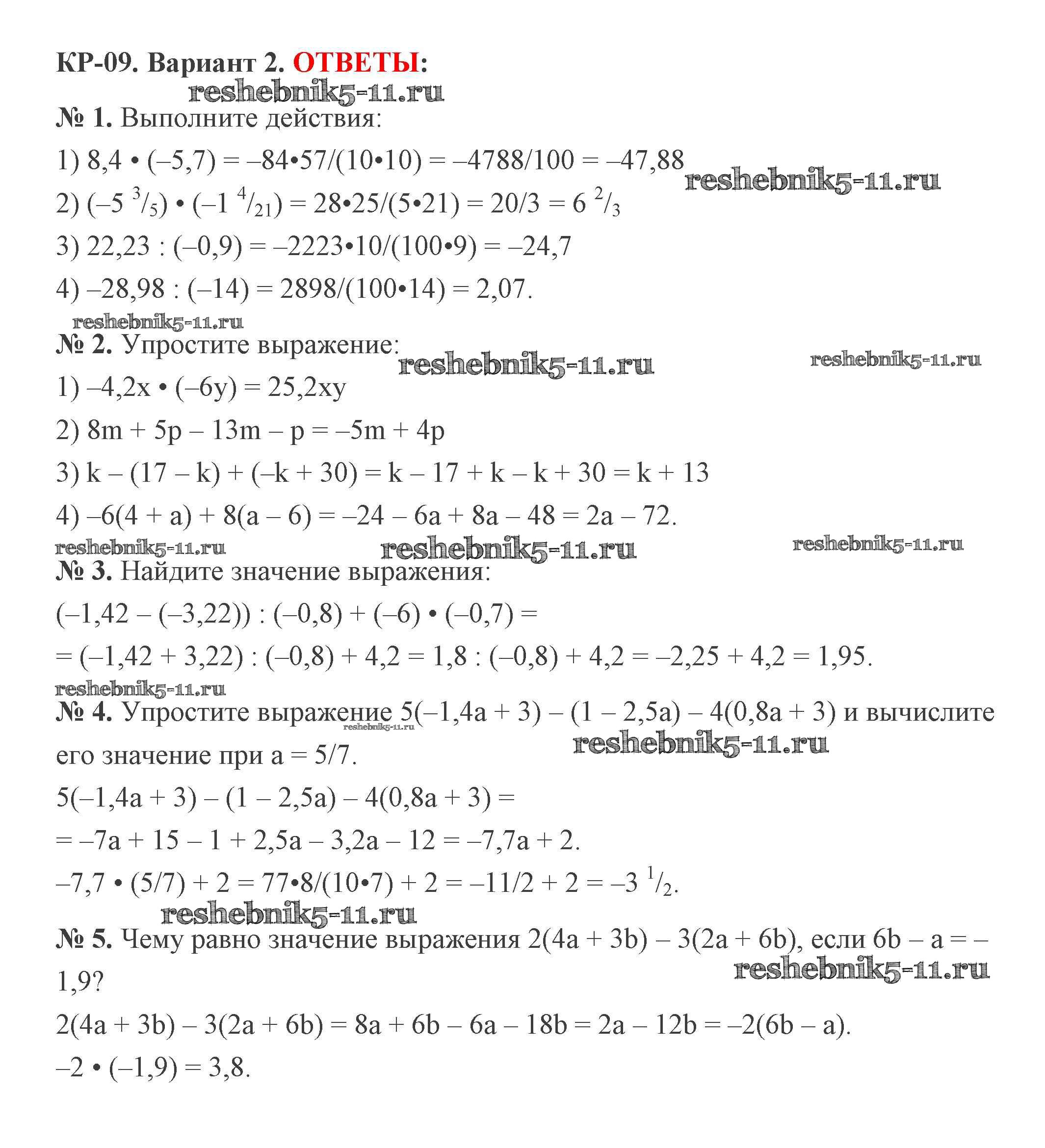 Готовая домашняя работа с ответами по Математике за 6 класс Мерзляк, Полонский, Рабинович, Якир Дидактические материалы Алгоритм успеха Вентана-граф 2017 ФГОС - КР-9. Варианты 2