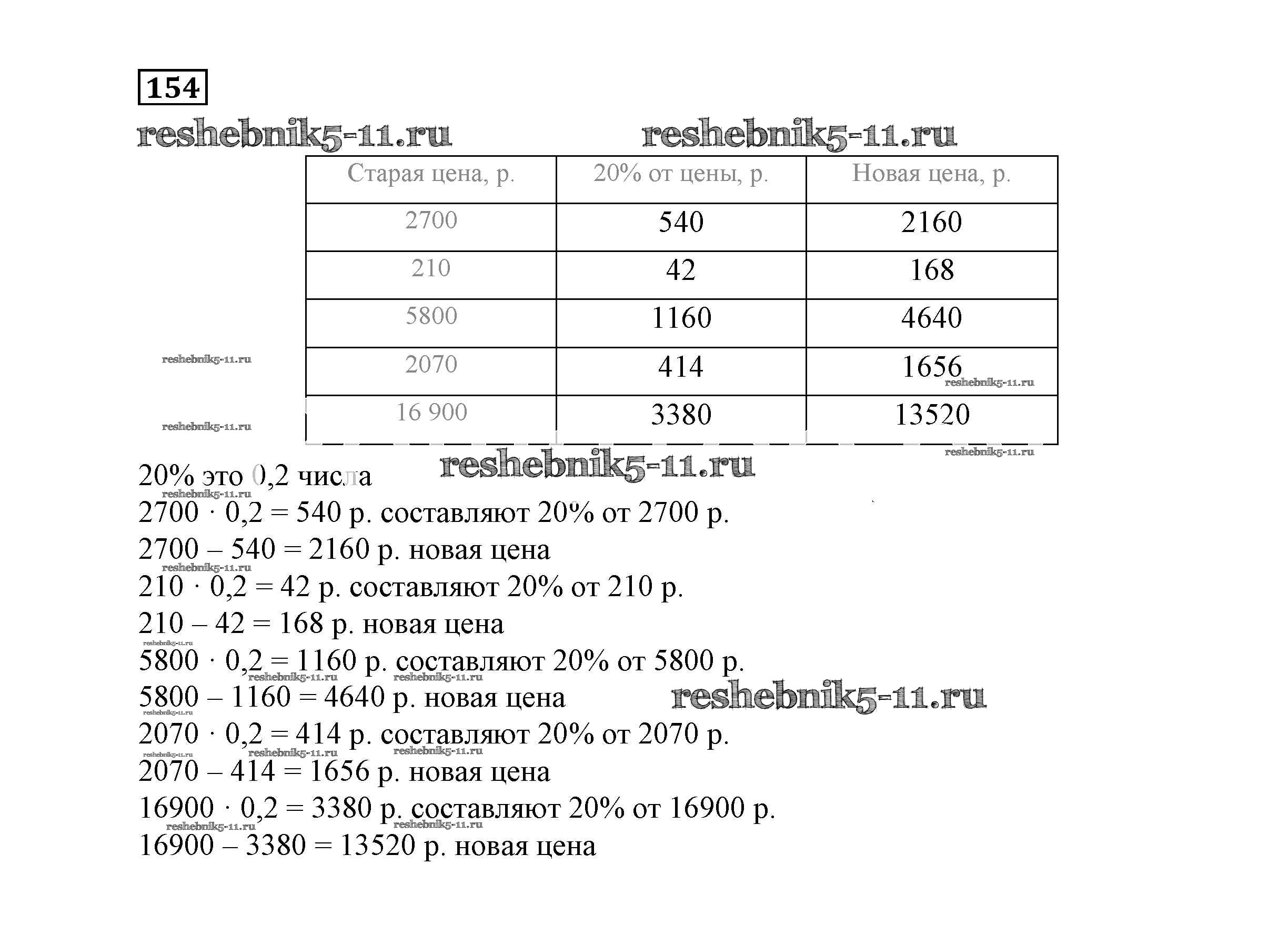 Готовая домашняя работа с ответами по Математике за 6 класс Истомина Учебник Ассоциация 21 век 2015 ФГОС - Задания 154