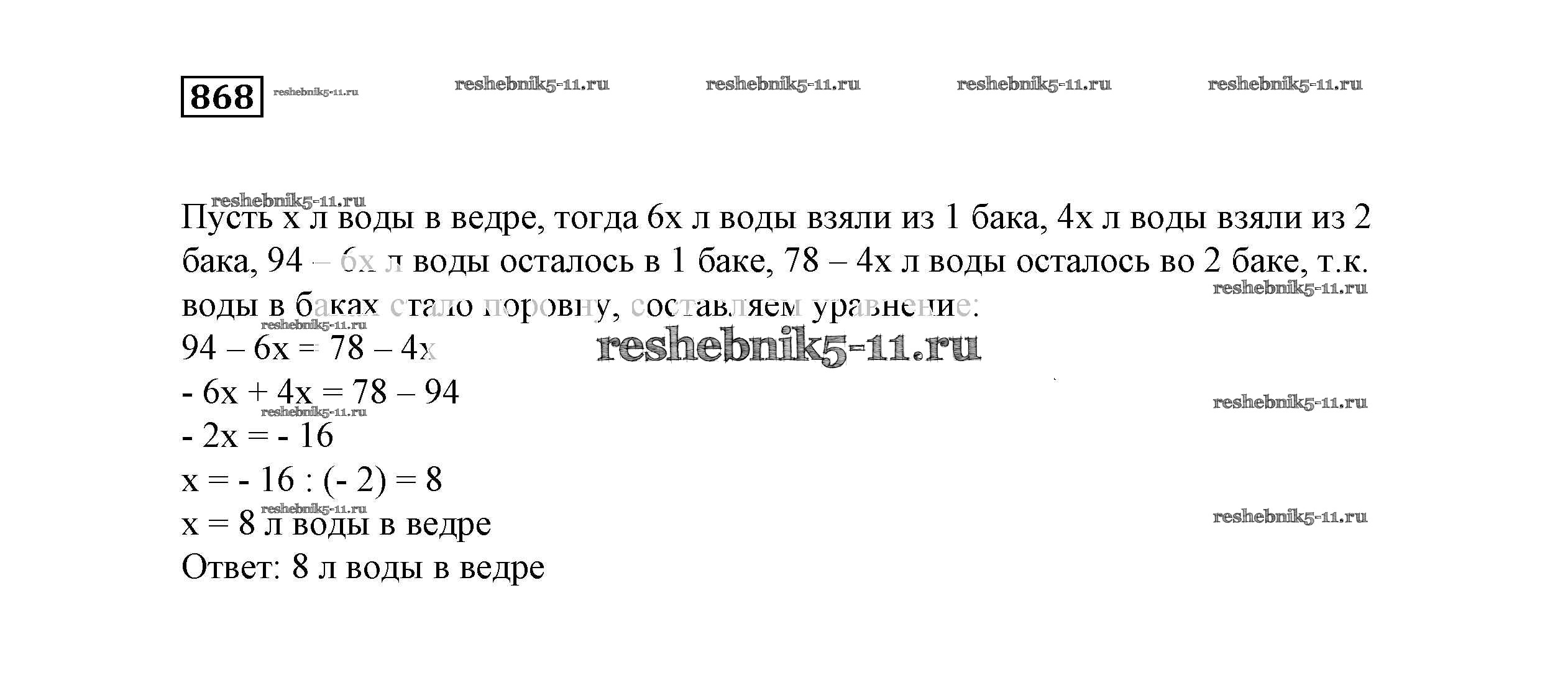 Готовая домашняя работа с ответами по Математике за 6 класс Истомина Учебник Ассоциация 21 век 2015 ФГОС - Задания 868
