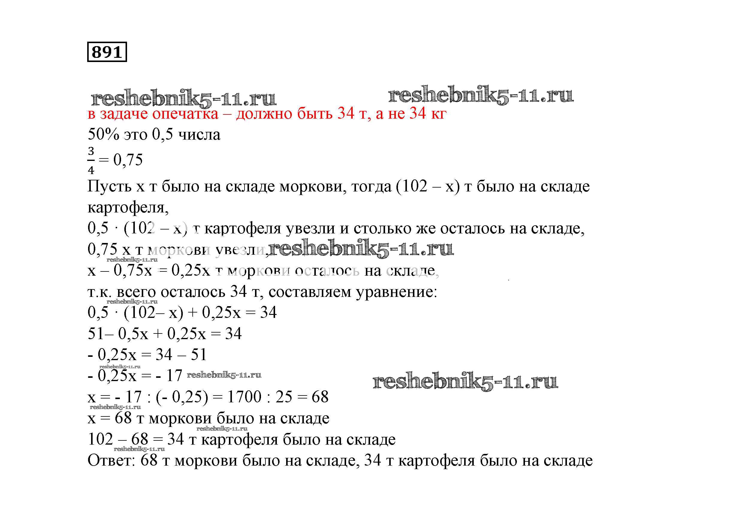 Готовая домашняя работа с ответами по Математике за 6 класс Истомина Учебник Ассоциация 21 век 2015 ФГОС - Задания 891