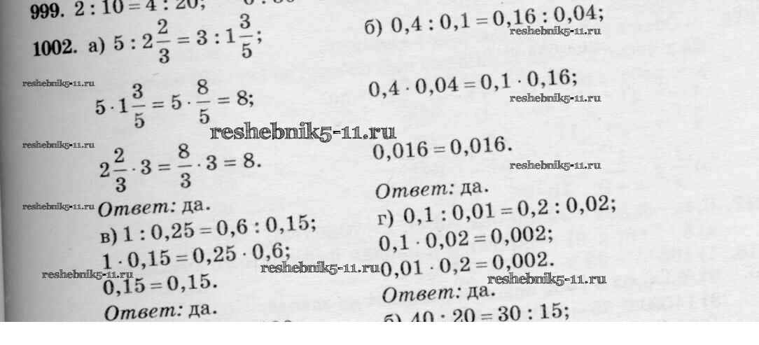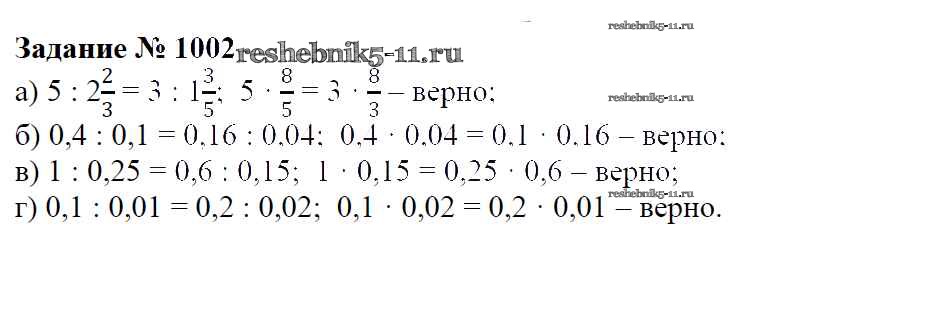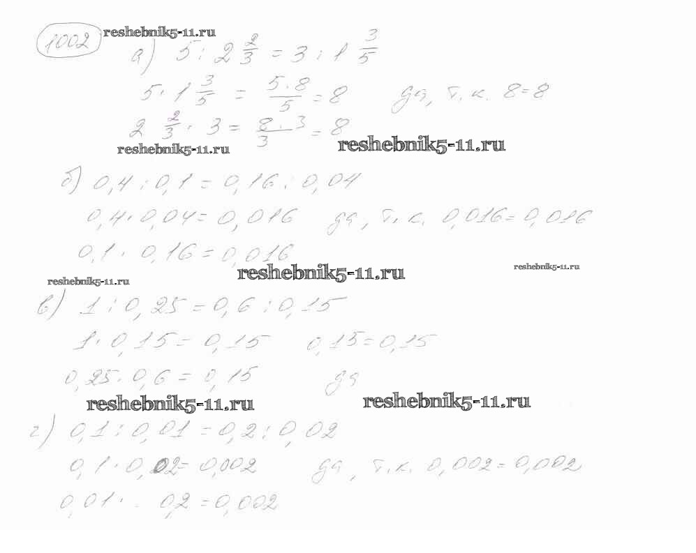 Готовая домашняя работа с ответами по Математике за 6 класс Зубарева, Мордкович Учебник Мнемозина 2015 ФГОС - Упражнения 1002