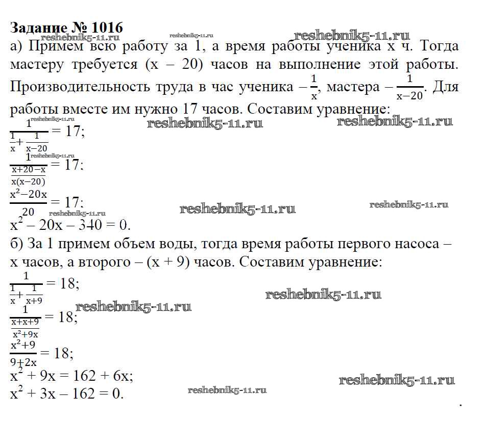 Готовая домашняя работа с ответами по Математике за 6 класс Зубарева, Мордкович Учебник Мнемозина 2015 ФГОС - Упражнения 1016