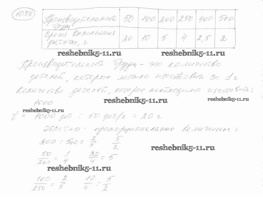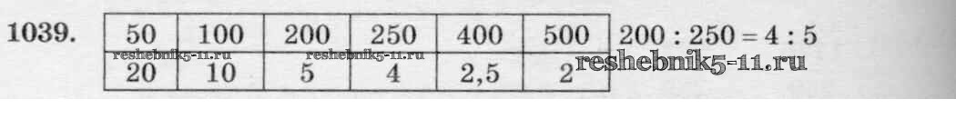 Готовая домашняя работа с ответами по Математике за 6 класс Зубарева, Мордкович Учебник Мнемозина 2015 ФГОС - Упражнения 1039
