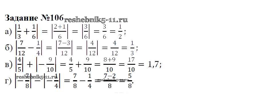 Готовая домашняя работа с ответами по Математике за 6 класс Зубарева, Мордкович Учебник Мнемозина 2015 ФГОС - Упражнения 106