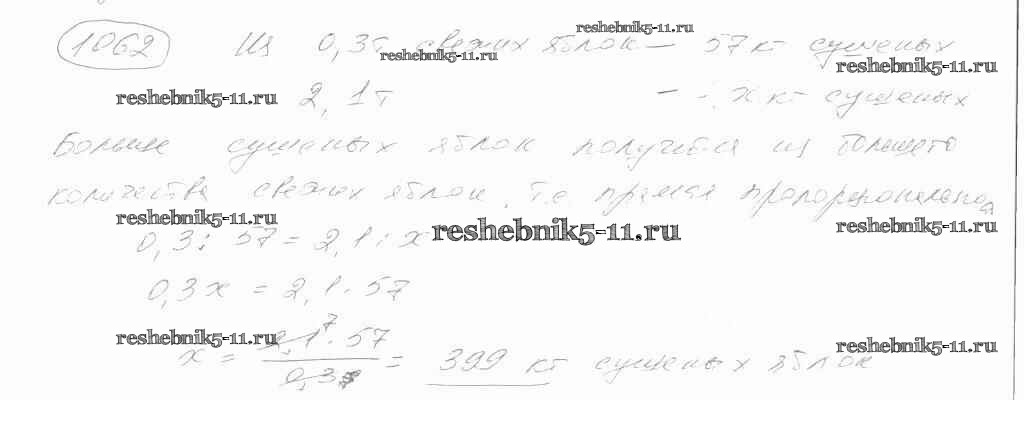 Готовая домашняя работа с ответами по Математике за 6 класс Зубарева, Мордкович Учебник Мнемозина 2015 ФГОС - Упражнения 1062
