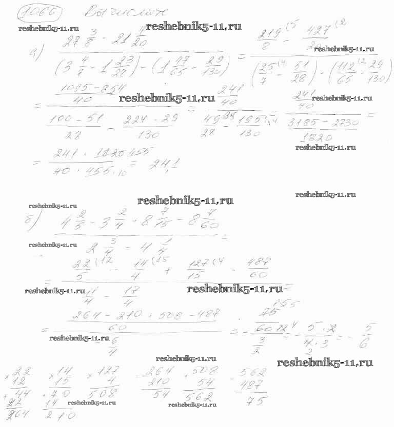 Готовая домашняя работа с ответами по Математике за 6 класс Зубарева, Мордкович Учебник Мнемозина 2015 ФГОС - Упражнения 1066