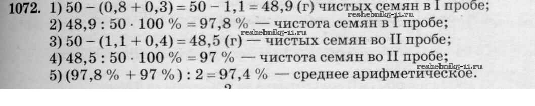 Готовая домашняя работа с ответами по Математике за 6 класс Зубарева, Мордкович Учебник Мнемозина 2015 ФГОС - Упражнения 1072