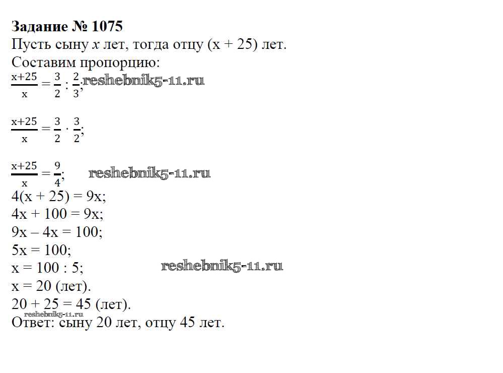 Готовая домашняя работа с ответами по Математике за 6 класс Зубарева, Мордкович Учебник Мнемозина 2015 ФГОС - Упражнения 1075