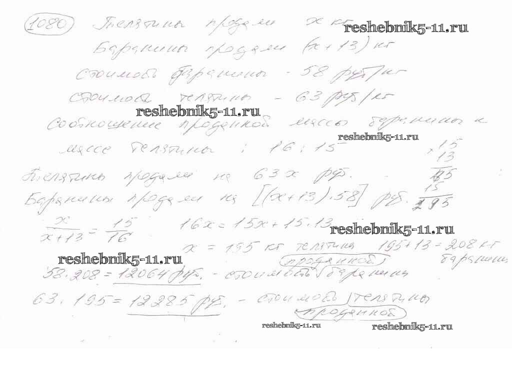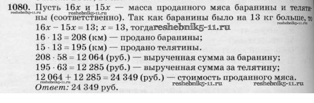 Готовая домашняя работа с ответами по Математике за 6 класс Зубарева, Мордкович Учебник Мнемозина 2015 ФГОС - Упражнения 1080