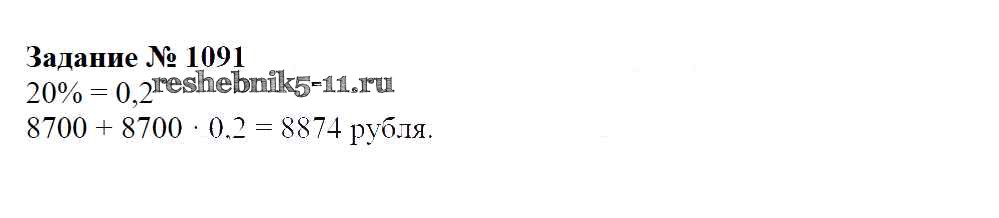 Готовая домашняя работа с ответами по Математике за 6 класс Зубарева, Мордкович Учебник Мнемозина 2015 ФГОС - Упражнения 1091