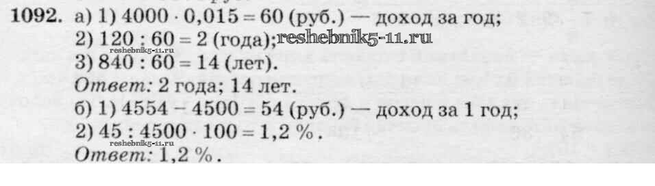 Готовая домашняя работа с ответами по Математике за 6 класс Зубарева, Мордкович Учебник Мнемозина 2015 ФГОС - Упражнения 1092