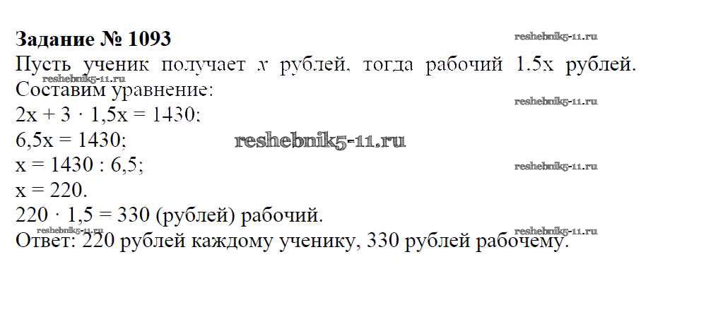 Готовая домашняя работа с ответами по Математике за 6 класс Зубарева, Мордкович Учебник Мнемозина 2015 ФГОС - Упражнения 1093
