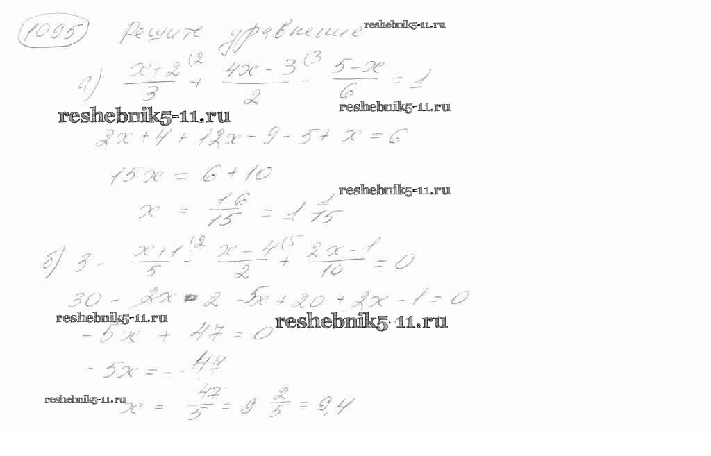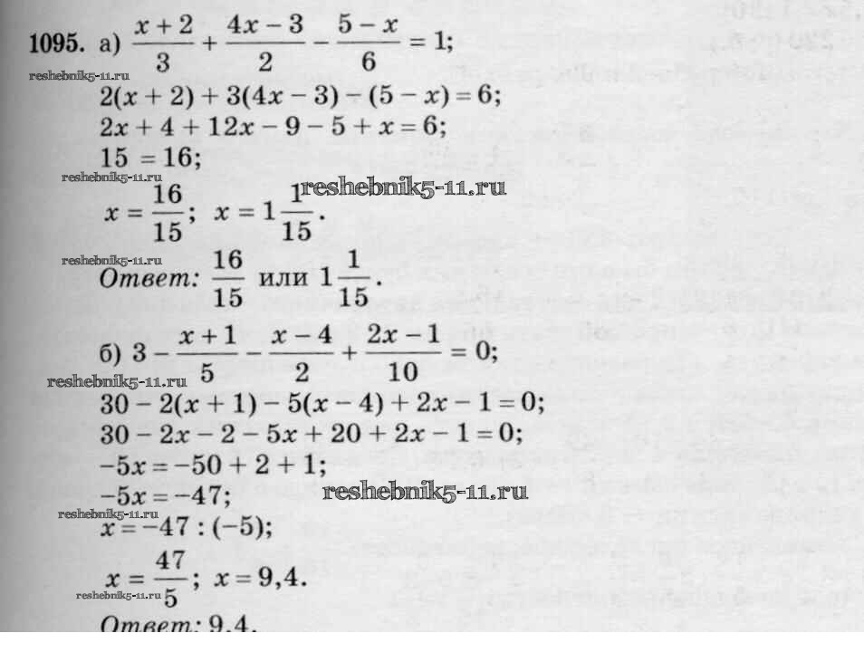 Готовая домашняя работа с ответами по Математике за 6 класс Зубарева, Мордкович Учебник Мнемозина 2015 ФГОС - Упражнения 1095