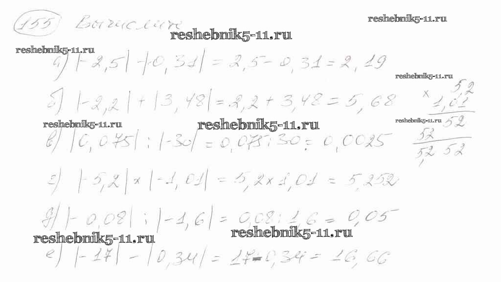 Готовая домашняя работа с ответами по Математике за 6 класс Зубарева, Мордкович Учебник Мнемозина 2015 ФГОС - Упражнения 155