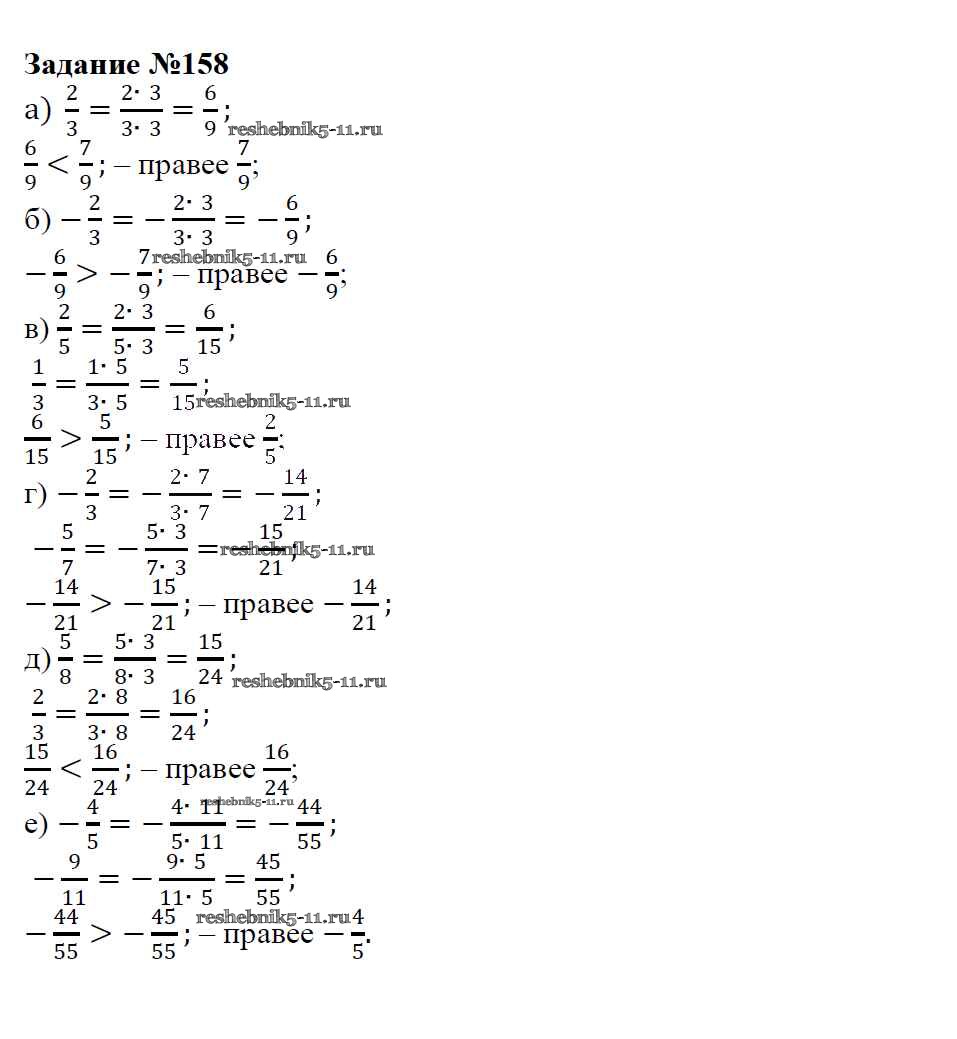 Готовая домашняя работа с ответами по Математике за 6 класс Зубарева, Мордкович Учебник Мнемозина 2015 ФГОС - Упражнения 158
