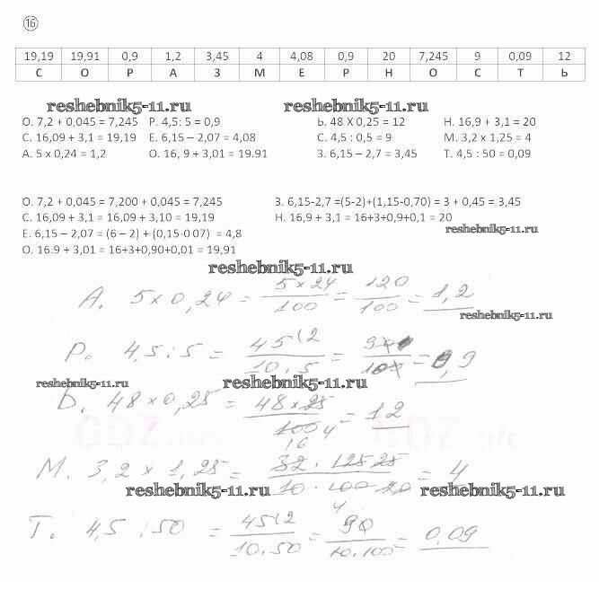 Готовая домашняя работа с ответами по Математике за 6 класс Зубарева, Мордкович Учебник Мнемозина 2015 ФГОС - Упражнения 16