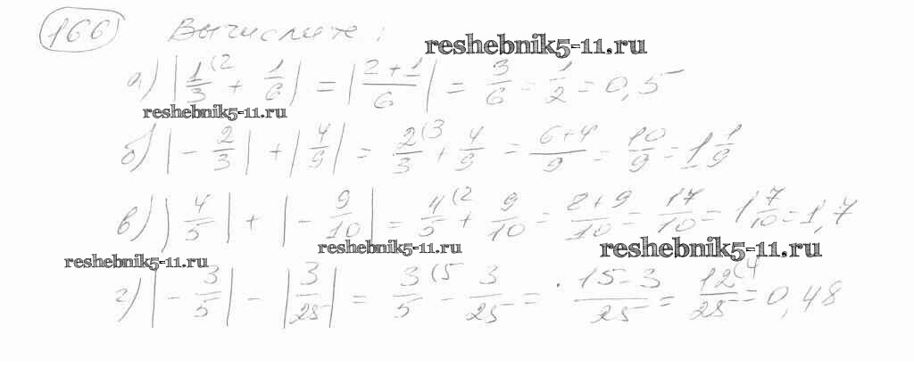Готовая домашняя работа с ответами по Математике за 6 класс Зубарева, Мордкович Учебник Мнемозина 2015 ФГОС - Упражнения 166