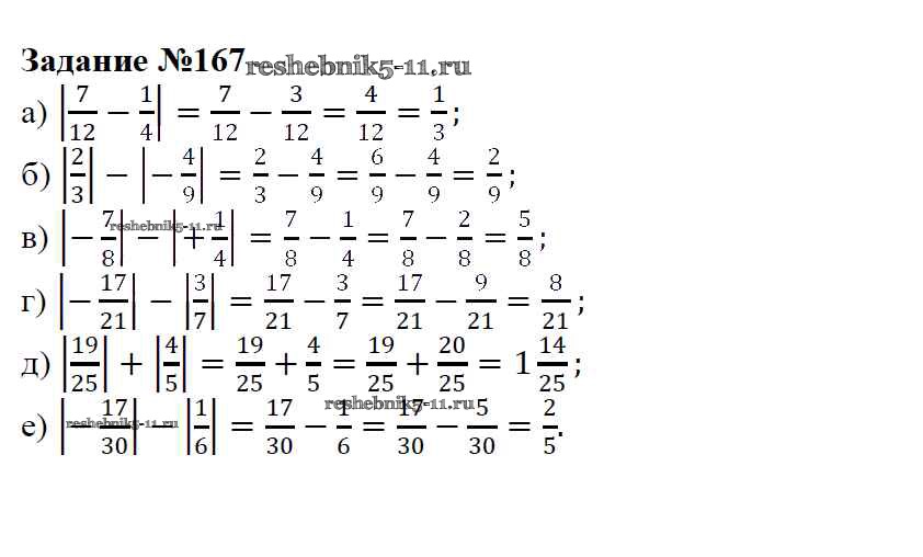 Готовая домашняя работа с ответами по Математике за 6 класс Зубарева, Мордкович Учебник Мнемозина 2015 ФГОС - Упражнения 167