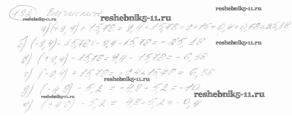 Готовая домашняя работа с ответами по Математике за 6 класс Зубарева, Мордкович Учебник Мнемозина 2015 ФГОС - Упражнения 192