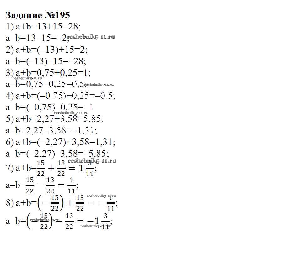 Готовая домашняя работа с ответами по Математике за 6 класс Зубарева, Мордкович Учебник Мнемозина 2015 ФГОС - Упражнения 195
