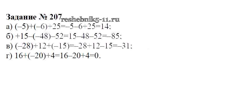 Готовая домашняя работа с ответами по Математике за 6 класс Зубарева, Мордкович Учебник Мнемозина 2015 ФГОС - Упражнения 207