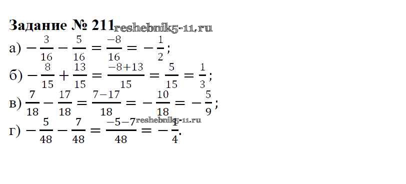Готовая домашняя работа с ответами по Математике за 6 класс Зубарева, Мордкович Учебник Мнемозина 2015 ФГОС - Упражнения 211