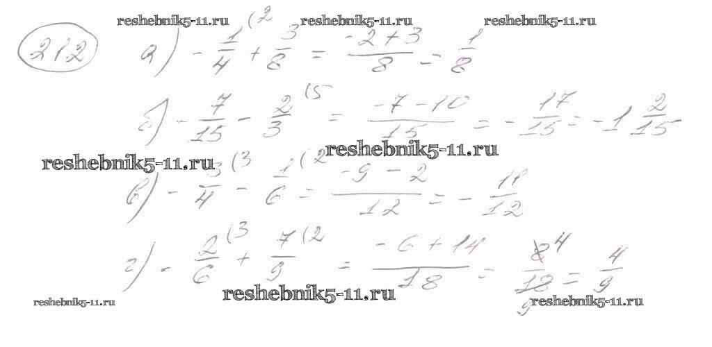 Готовая домашняя работа с ответами по Математике за 6 класс Зубарева, Мордкович Учебник Мнемозина 2015 ФГОС - Упражнения 212