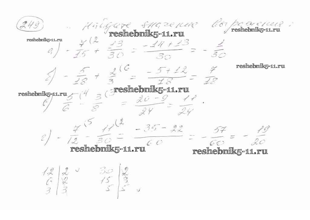 Готовая домашняя работа с ответами по Математике за 6 класс Зубарева, Мордкович Учебник Мнемозина 2015 ФГОС - Упражнения 249