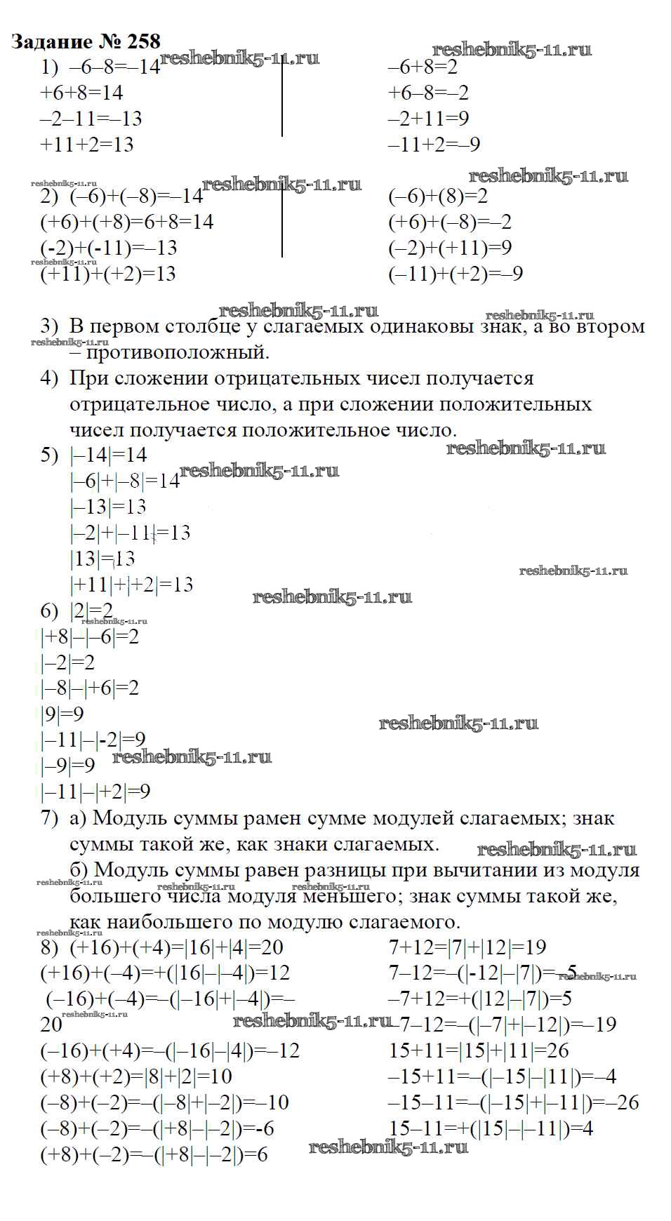 Готовая домашняя работа с ответами по Математике за 6 класс Зубарева, Мордкович Учебник Мнемозина 2015 ФГОС - Упражнения 258