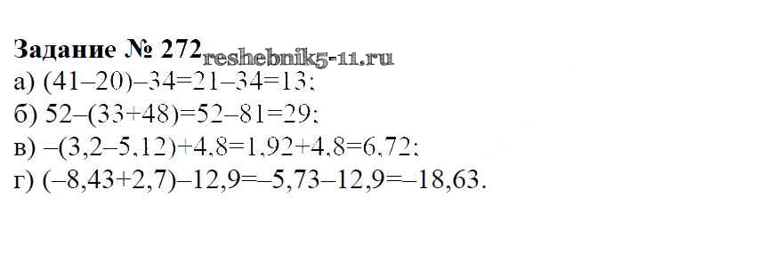Готовая домашняя работа с ответами по Математике за 6 класс Зубарева, Мордкович Учебник Мнемозина 2015 ФГОС - Упражнения 272