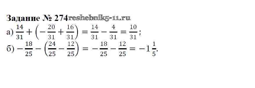 Готовая домашняя работа с ответами по Математике за 6 класс Зубарева, Мордкович Учебник Мнемозина 2015 ФГОС - Упражнения 274