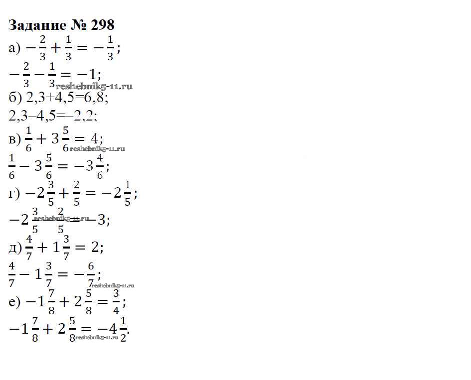 Готовая домашняя работа с ответами по Математике за 6 класс Зубарева, Мордкович Учебник Мнемозина 2015 ФГОС - Упражнения 298