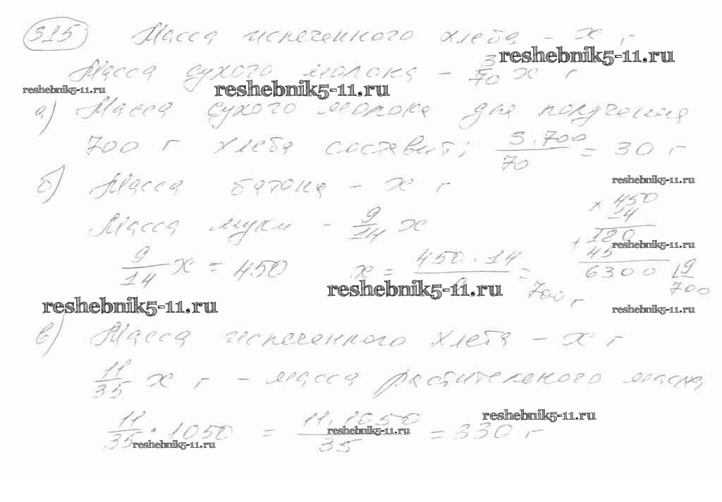 Готовая домашняя работа с ответами по Математике за 6 класс Зубарева, Мордкович Учебник Мнемозина 2015 ФГОС - Упражнения 315