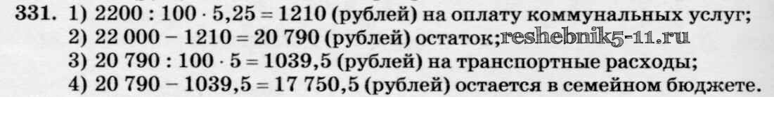 Готовая домашняя работа с ответами по Математике за 6 класс Зубарева, Мордкович Учебник Мнемозина 2015 ФГОС - Упражнения 331