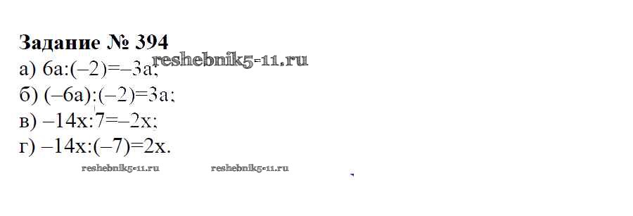 Готовая домашняя работа с ответами по Математике за 6 класс Зубарева, Мордкович Учебник Мнемозина 2015 ФГОС - Упражнения 394