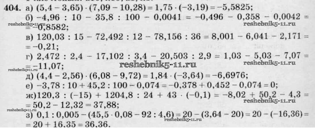 Готовая домашняя работа с ответами по Математике за 6 класс Зубарева, Мордкович Учебник Мнемозина 2015 ФГОС - Упражнения 404