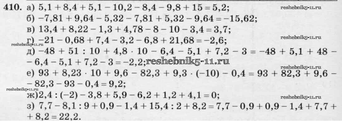 Готовая домашняя работа с ответами по Математике за 6 класс Зубарева, Мордкович Учебник Мнемозина 2015 ФГОС - Упражнения 410