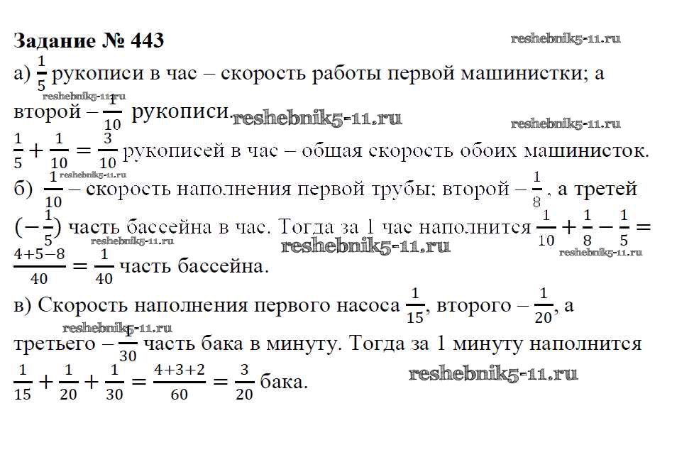 Готовая домашняя работа с ответами по Математике за 6 класс Зубарева, Мордкович Учебник Мнемозина 2015 ФГОС - Упражнения 443