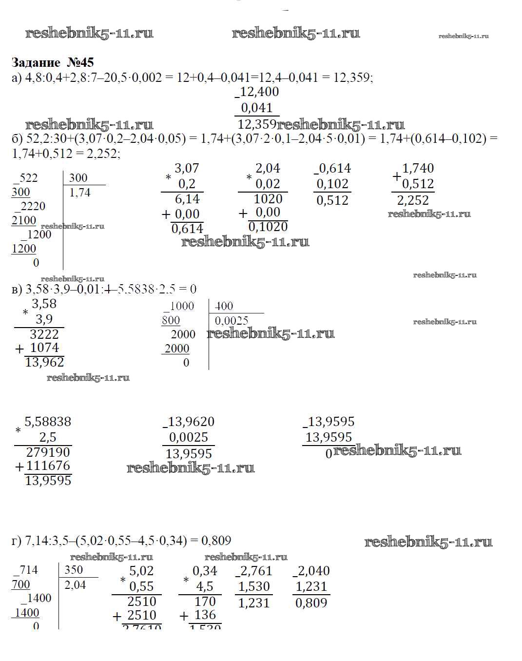 Готовая домашняя работа с ответами по Математике за 6 класс Зубарева, Мордкович Учебник Мнемозина 2015 ФГОС - Упражнения 45