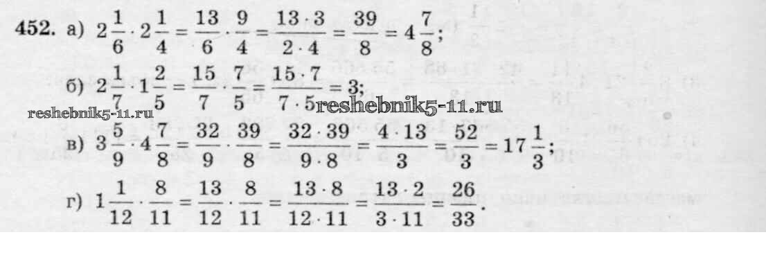 Готовая домашняя работа с ответами по Математике за 6 класс Зубарева, Мордкович Учебник Мнемозина 2015 ФГОС - Упражнения 452