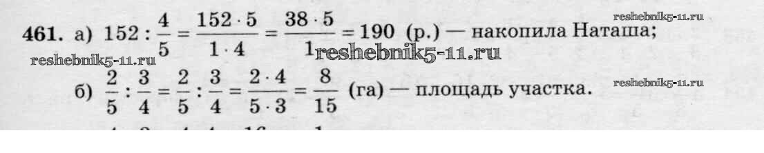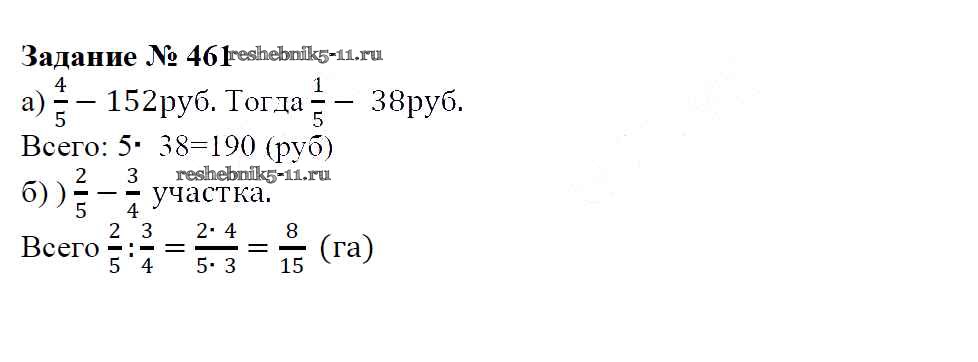 Готовая домашняя работа с ответами по Математике за 6 класс Зубарева, Мордкович Учебник Мнемозина 2015 ФГОС - Упражнения 461