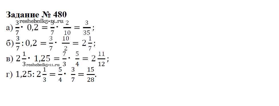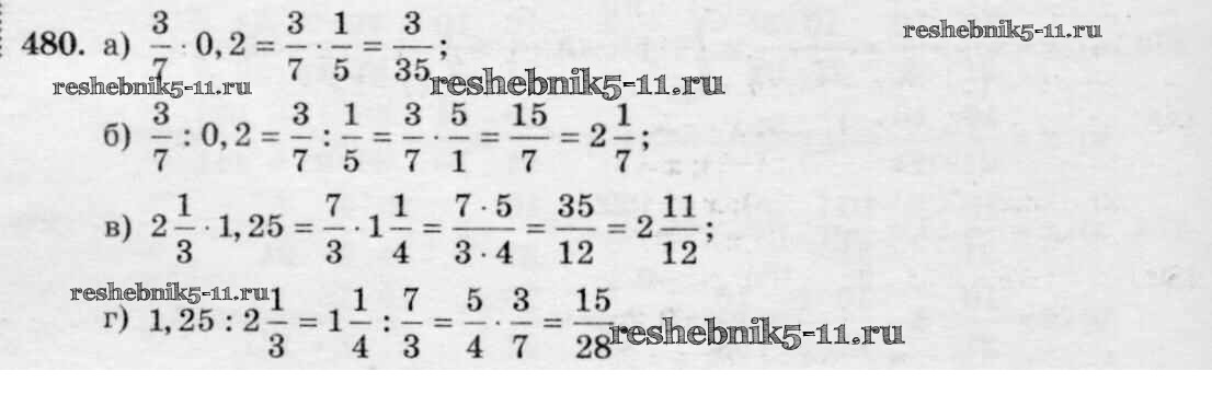 Готовая домашняя работа с ответами по Математике за 6 класс Зубарева, Мордкович Учебник Мнемозина 2015 ФГОС - Упражнения 480