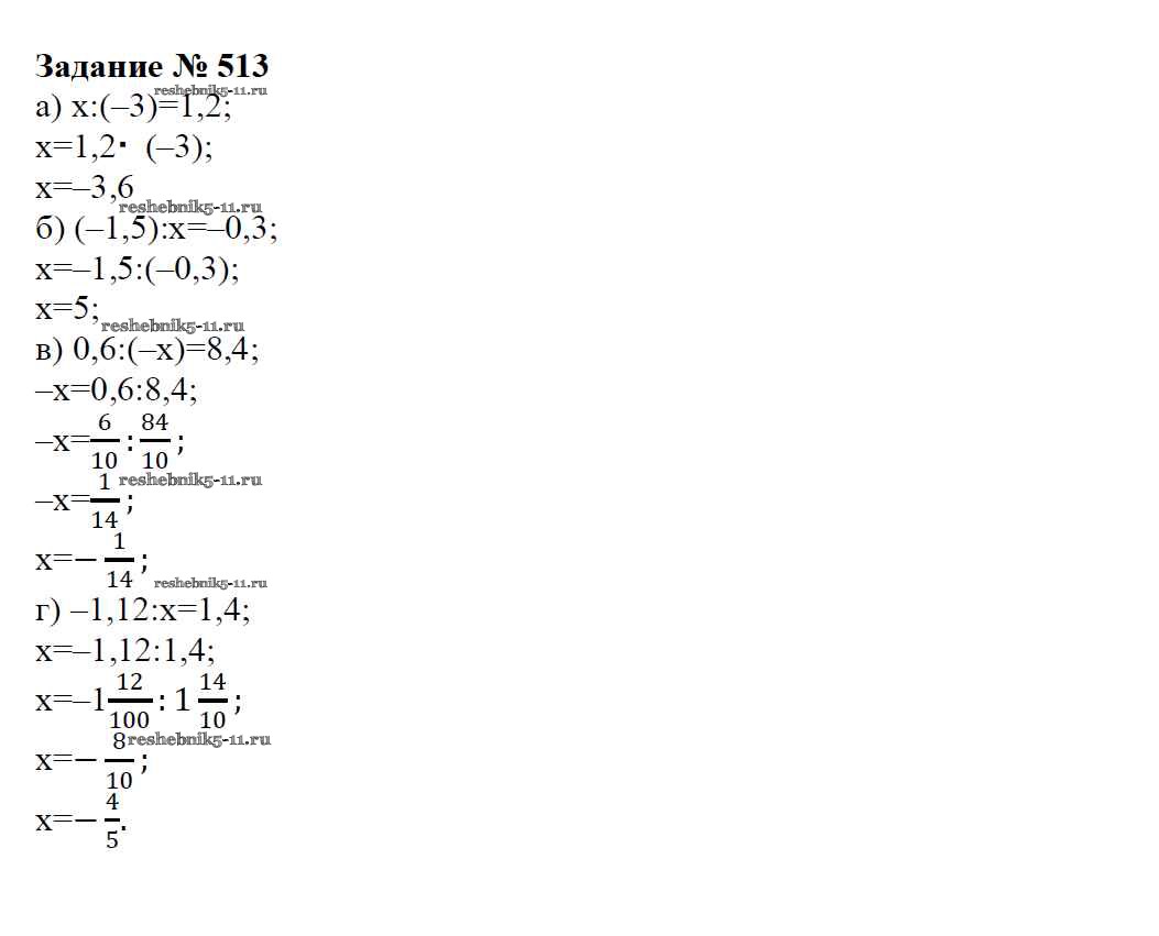 Готовая домашняя работа с ответами по Математике за 6 класс Зубарева, Мордкович Учебник Мнемозина 2015 ФГОС - Упражнения 513