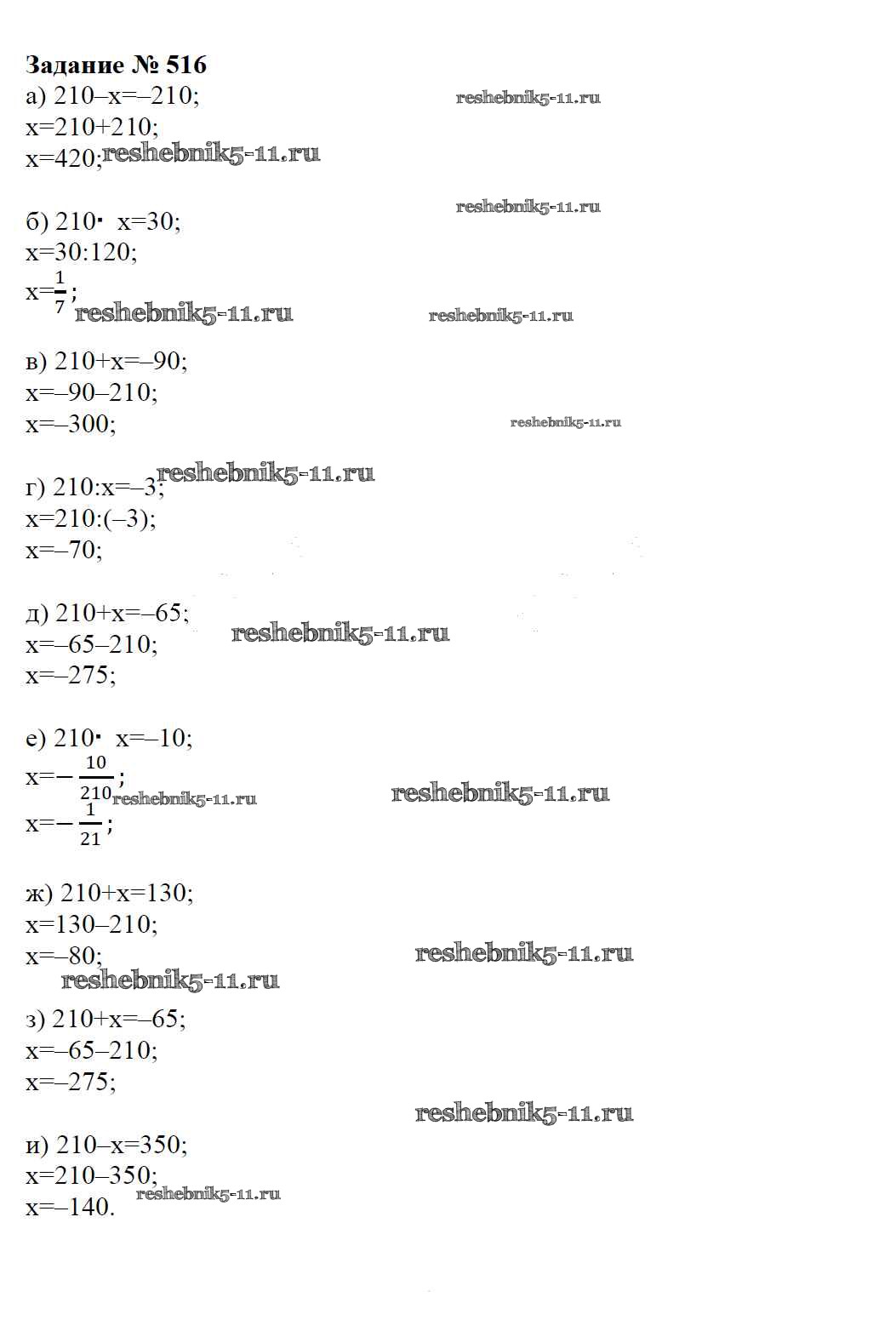 Готовая домашняя работа с ответами по Математике за 6 класс Зубарева, Мордкович Учебник Мнемозина 2015 ФГОС - Упражнения 516