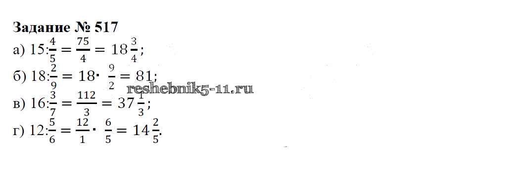Готовая домашняя работа с ответами по Математике за 6 класс Зубарева, Мордкович Учебник Мнемозина 2015 ФГОС - Упражнения 517