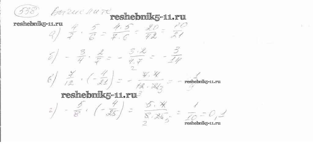 Готовая домашняя работа с ответами по Математике за 6 класс Зубарева, Мордкович Учебник Мнемозина 2015 ФГОС - Упражнения 538