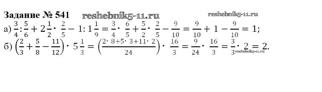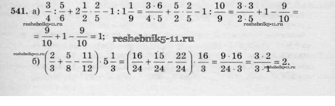 Готовая домашняя работа с ответами по Математике за 6 класс Зубарева, Мордкович Учебник Мнемозина 2015 ФГОС - Упражнения 541