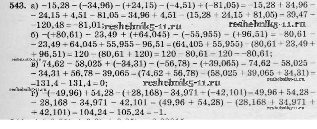 Готовая домашняя работа с ответами по Математике за 6 класс Зубарева, Мордкович Учебник Мнемозина 2015 ФГОС - Упражнения 543